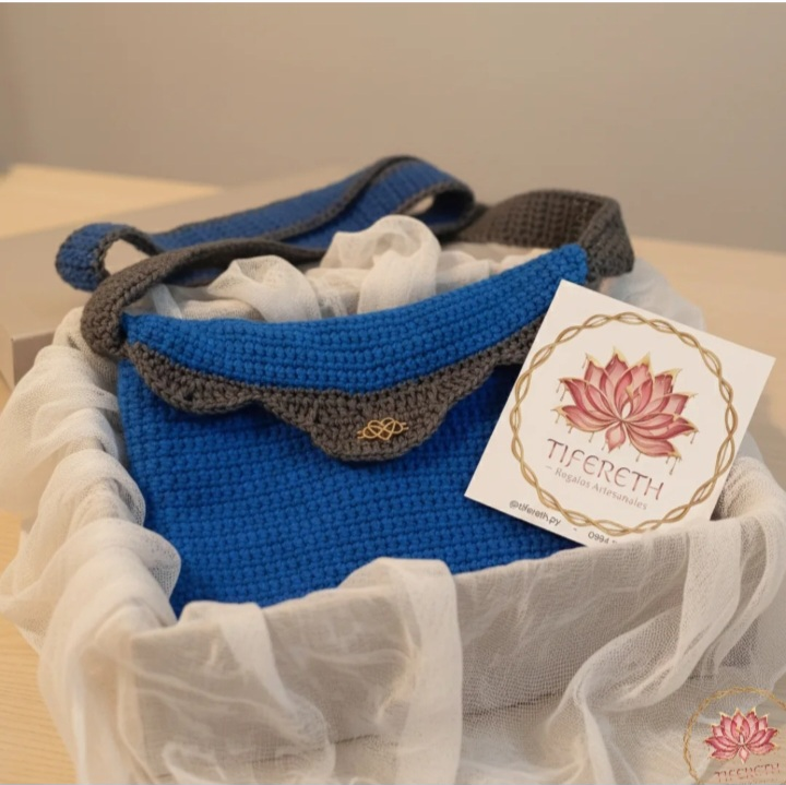 BANDOLERA EN CROCHET AZUL/GRIS