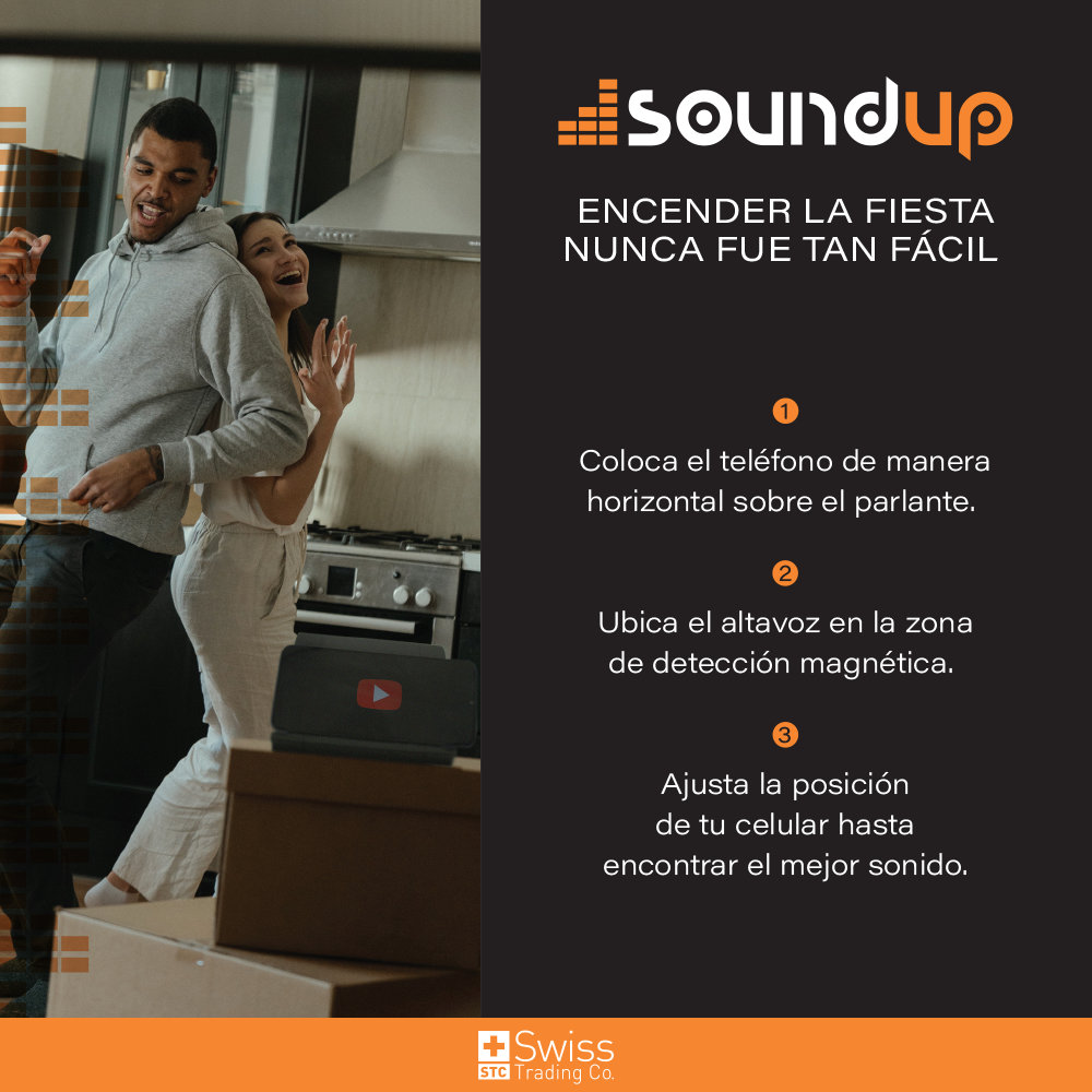 ¿Te ha pasado que intentas reproducir música desde tu celular y el volumen simplemente no es suficiente? Con SoundUp, ese problema quedó atrás. Solo coloca tu celular sobre el parlante y deja que su tecnología de amplificación inteligente haga el resto. Gracias a su sistema de detección por proximidad, SoundUp amplifica el sonido de forma automática, sin necesidad de Bluetooth, cables o configuraciones. Ya sea para escuchar tus canciones favoritas, ver videos o incluso realizar llamadas y videollamadas, siempre obtendrás un sonido nítido, fuerte y sin interferencias.
