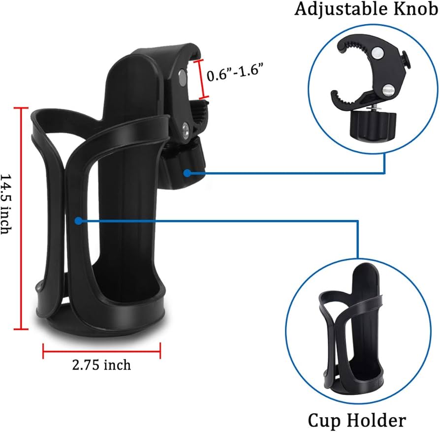 Soporte universal para botellas de agua, comúnmente utilizado en bicicletas, cochecitos de bebé o sillas de ruedas.