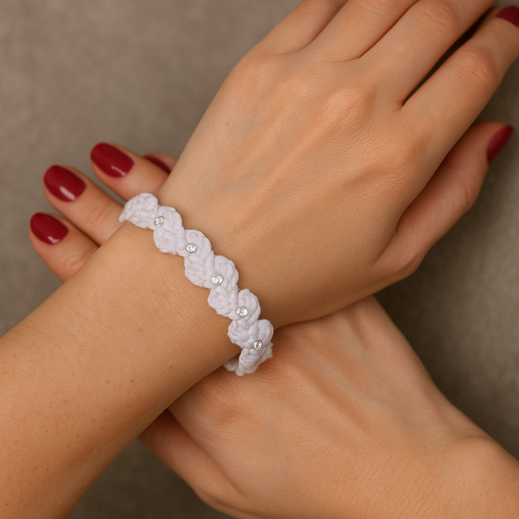 Entrelia es una colección de brazaletes que nace del alma y se expresa a través del arte textil. Cada brazalete es tejido a mano con hilos de intención, belleza y simbolismo, creando piezas únicas que abrazan la autenticidad de quien las lleva.