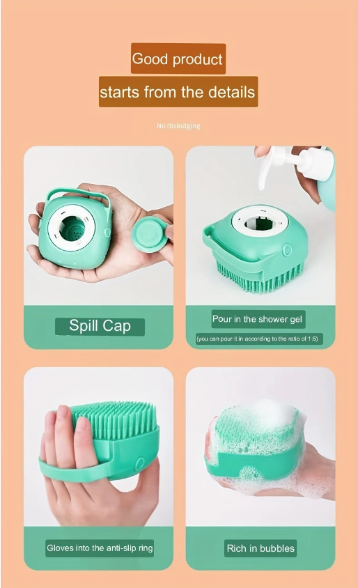 💡 Este cepillo de silicona con almacenamiento de champú limpia y masajea al mismo tiempo, eliminando suciedad y pelo suelto con facilidad.