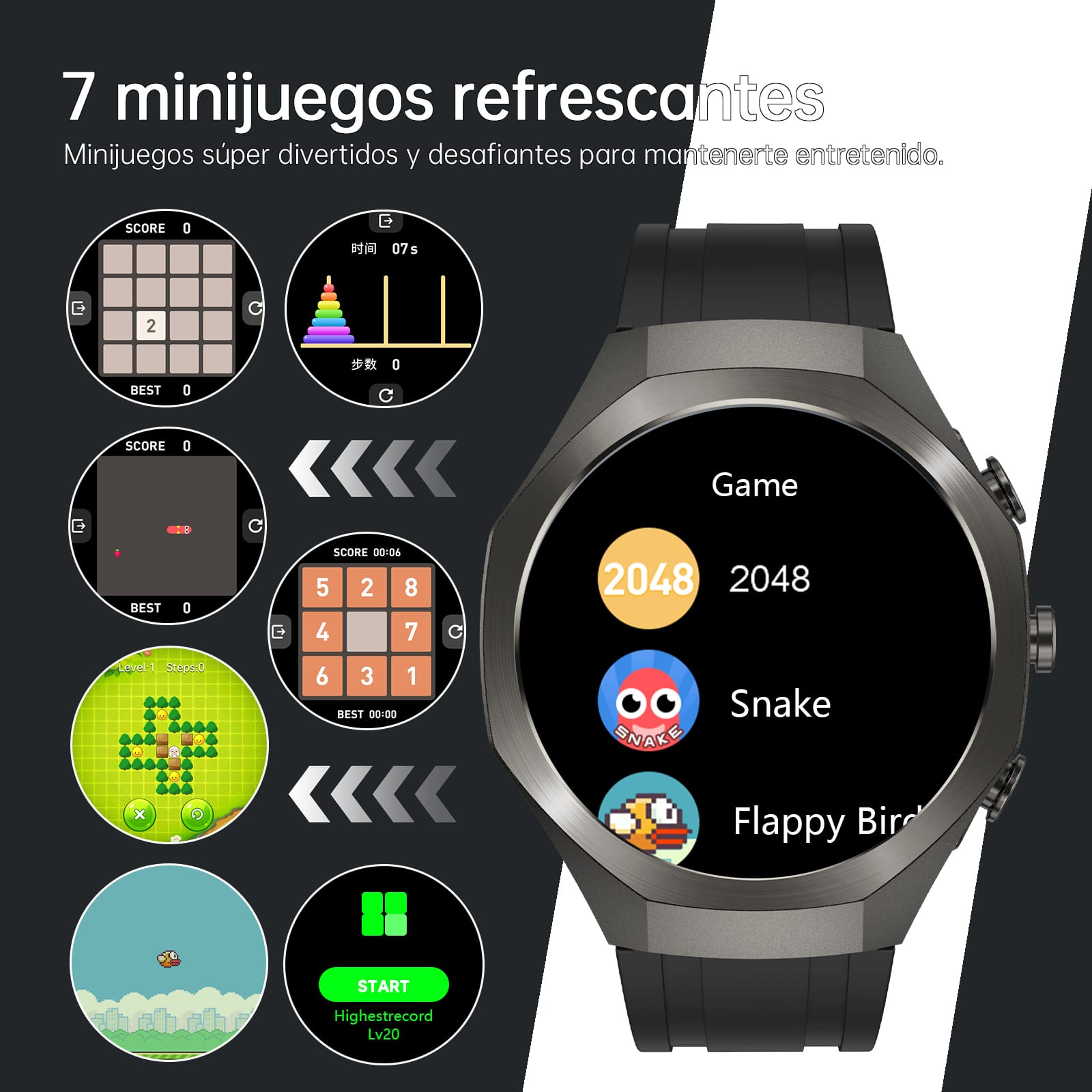 📲Fución:Contesta y realiza Llamadas /Tiempo/Ritmo cardiaco/Monitor de estrés/Podómetro/Control de musica/Notificaciones inteligentes/Reloj despertador/Camara a distancia/NFC(para llaves)/Brújula