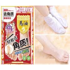 Mascarilla exfoliante JAPONES para pies con aceite de caballo de lin yun: blanqueamiento del talón y eliminación de callos -