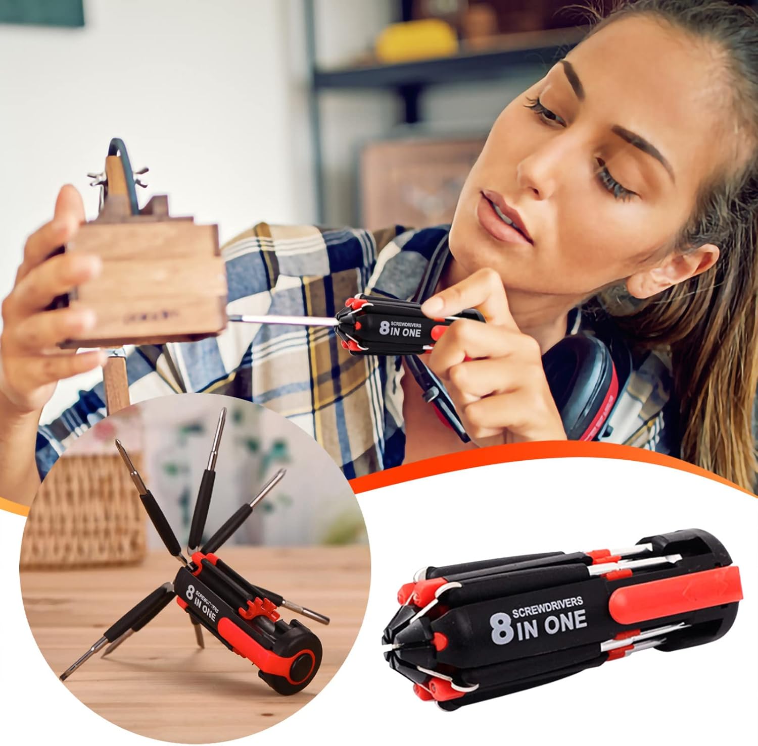 5. Al usar el destornillador, la linterna integrada se puede usar sola o para iluminar el área de trabajo.