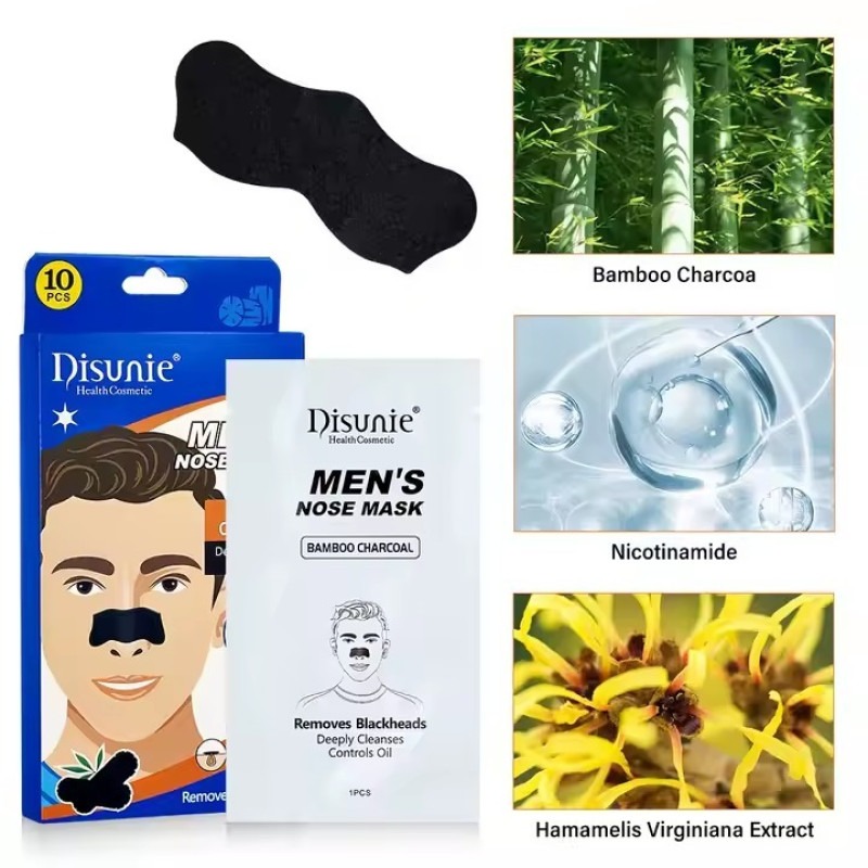 DISUNIE MEN'S NOSE MASK 10pcs Mascarilla masculino para extraer puntos negro de la nariz Elimina puntos negros, controla la grasa, resiste el acné, blanquea e ilumina. USO: Después de la limpieza, humedezca la nariz, coloque la superficie lisa de este producto sobre la nariz y déjelo actuar durante 15 minutos hasta que se seque y endurezca. Retire la mascarilla con cuidado y enjuague. Aplique el tónico
